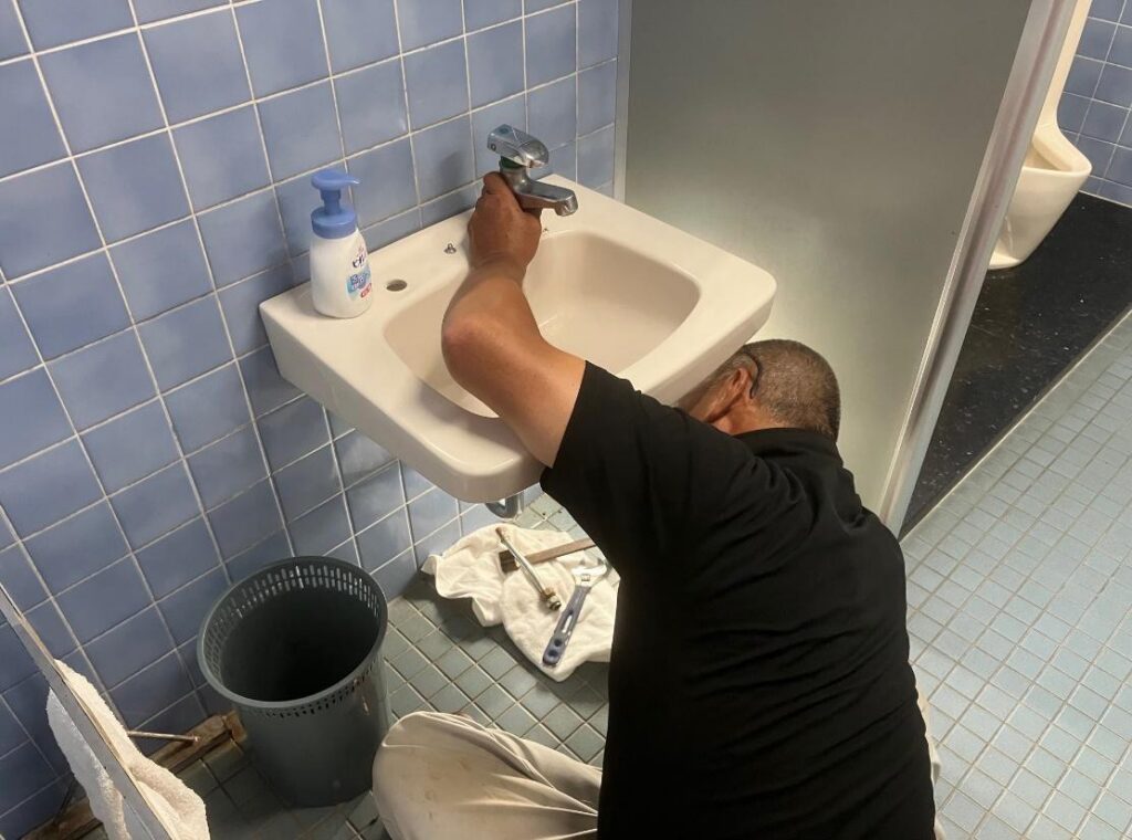 令和7年8月8日(金)9時00分から、全国水道週間に伴う給排水設備点検及び修繕を実施いたしました。新型コロナウイルス感染症が拡大する前は6月の水道週間に行っていましたが、安全面を考慮し今年度も学校の夏休み期間中に実施いたしました。 苫小牧市教育委員会、苫小牧市健康こども部こども育成課と協議し、市内の小中学校3校と保育園2園を対象に組合員5社8名で手洗器水栓から立水栓への取替、レバーハンドル、パッキン交換等の修繕を行いました。